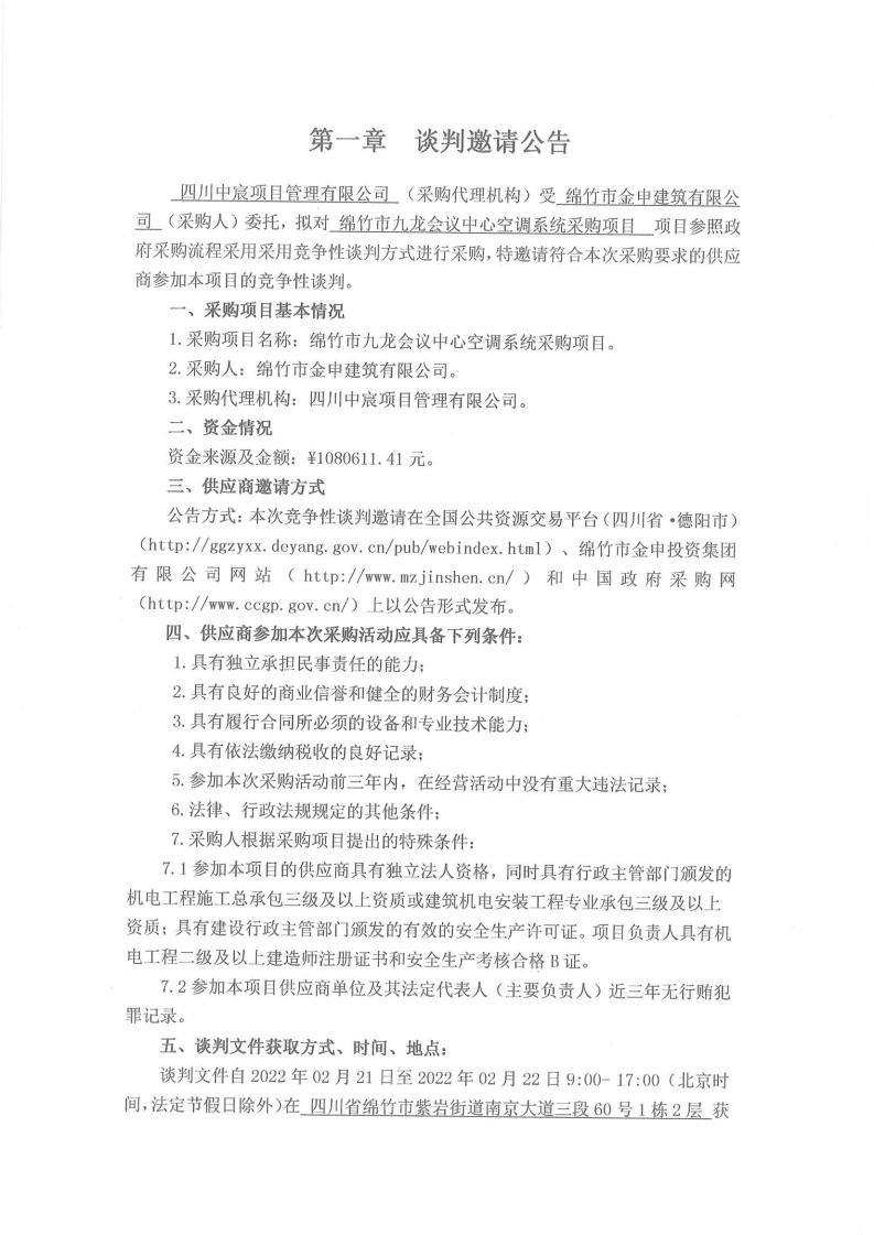 九龍會議中心空調(diào)系統(tǒng)采購項目談判邀請公告