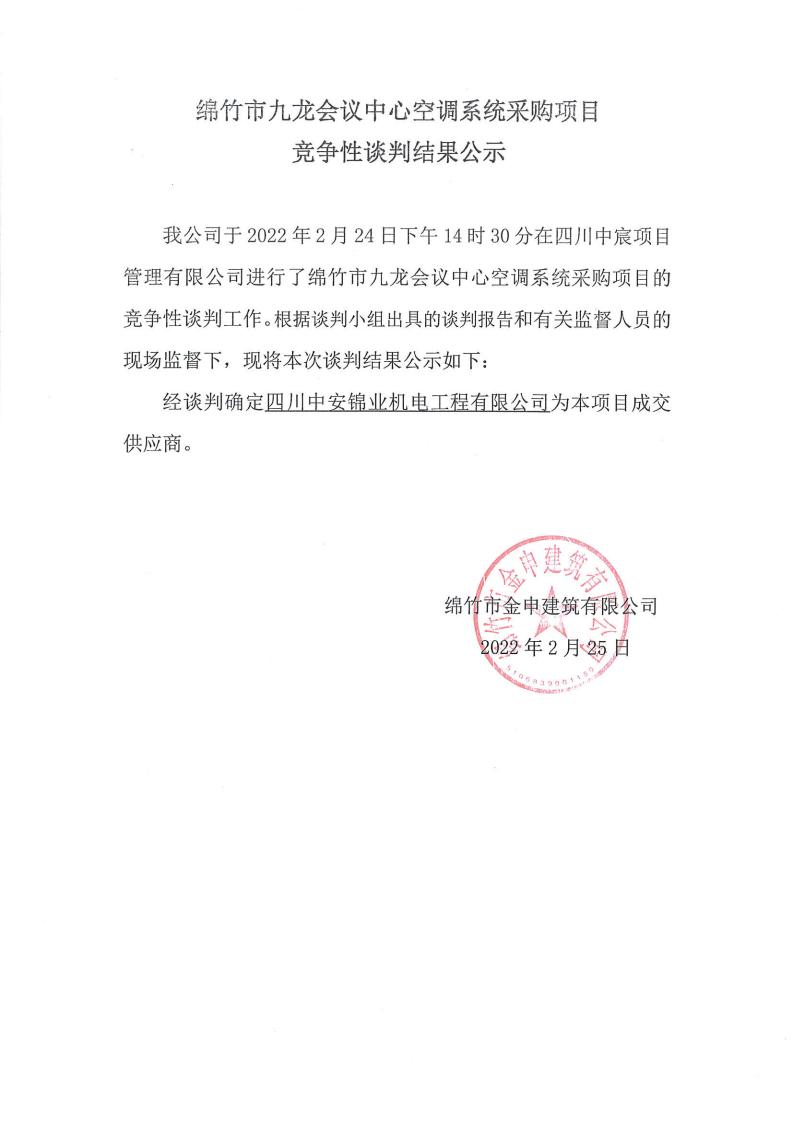 九龍會(huì)議中心空調(diào)系統(tǒng)采購項(xiàng)目競爭性談判結(jié)果公示
