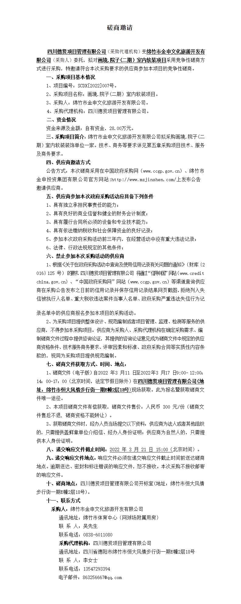 畫境.院子(二期)室內(nèi)軟裝項(xiàng)目磋商邀請公告