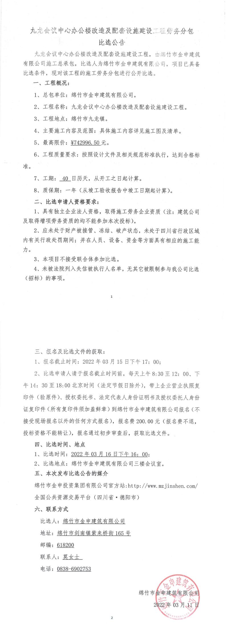 九龍會(huì)議中心辦公樓改造及配套設(shè)施建設(shè)工程比選公告