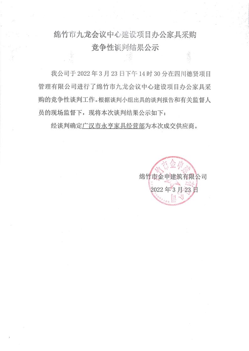 九龍會議中心建設(shè)項目辦公家具采購競爭性談判結(jié)果公示