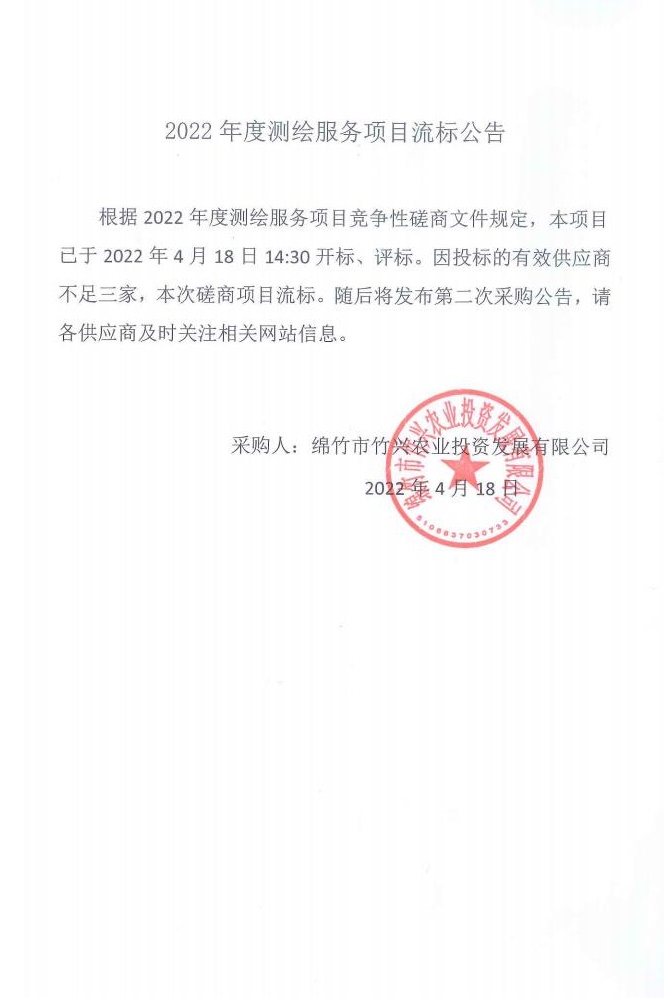 2022年度測(cè)繪服務(wù)項(xiàng)目流標(biāo)公告