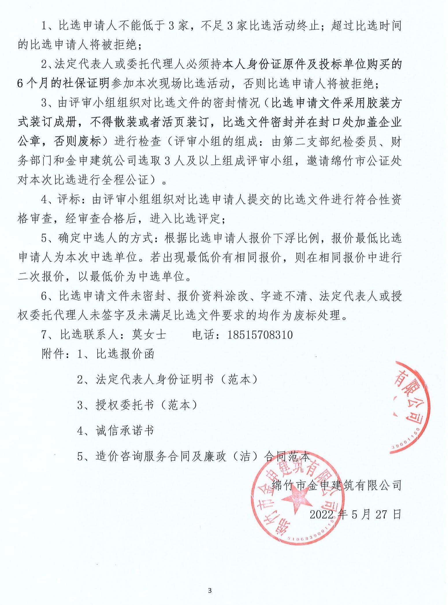造價咨詢服務第三方中介機構征集比選公告