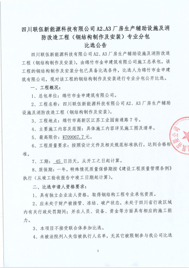 新能源公司改造工程(鋼結(jié)構(gòu)制作與安裝)比選公告