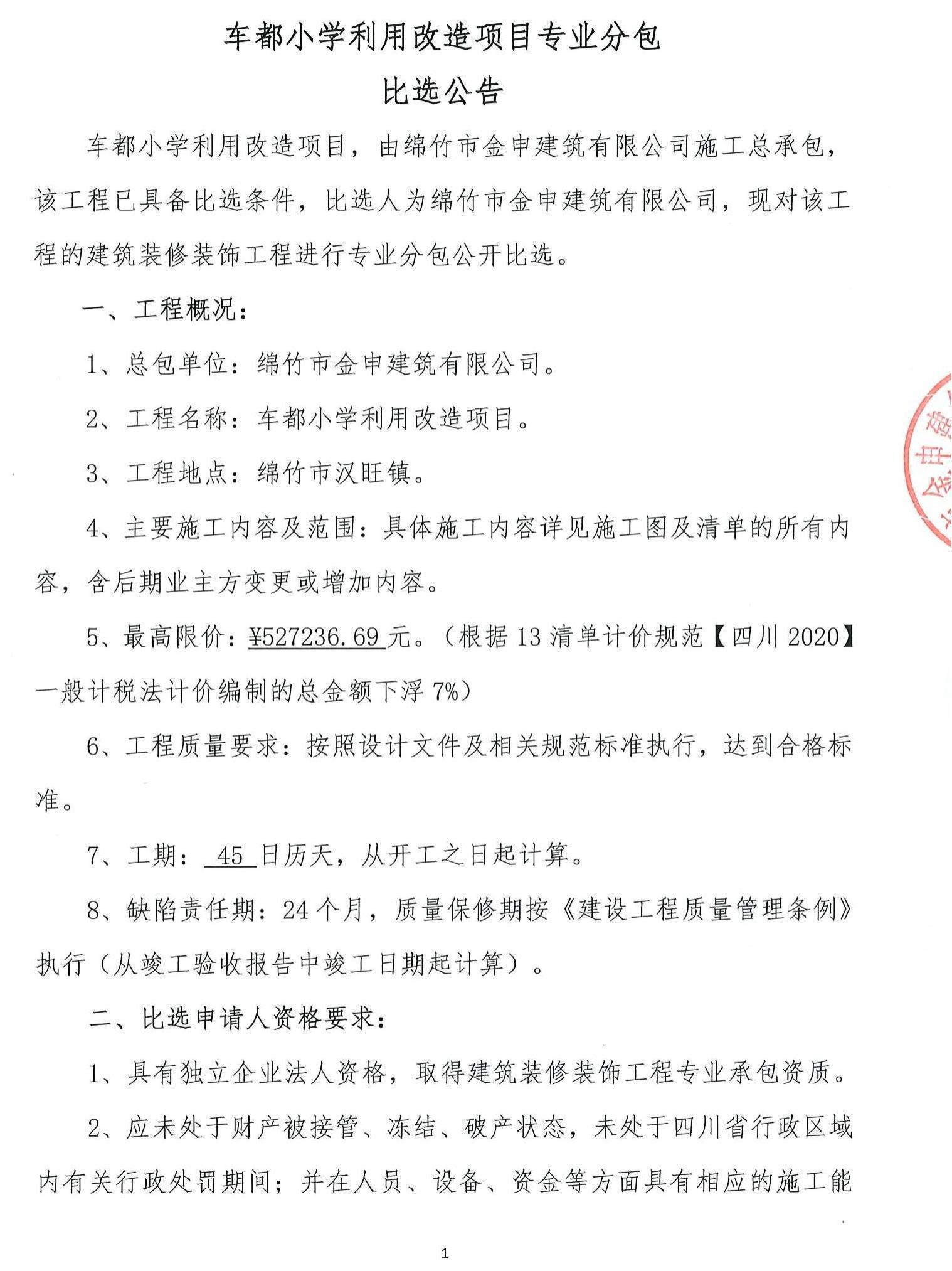 車都小學(xué)利用改造項(xiàng)目專業(yè)分包比選公告