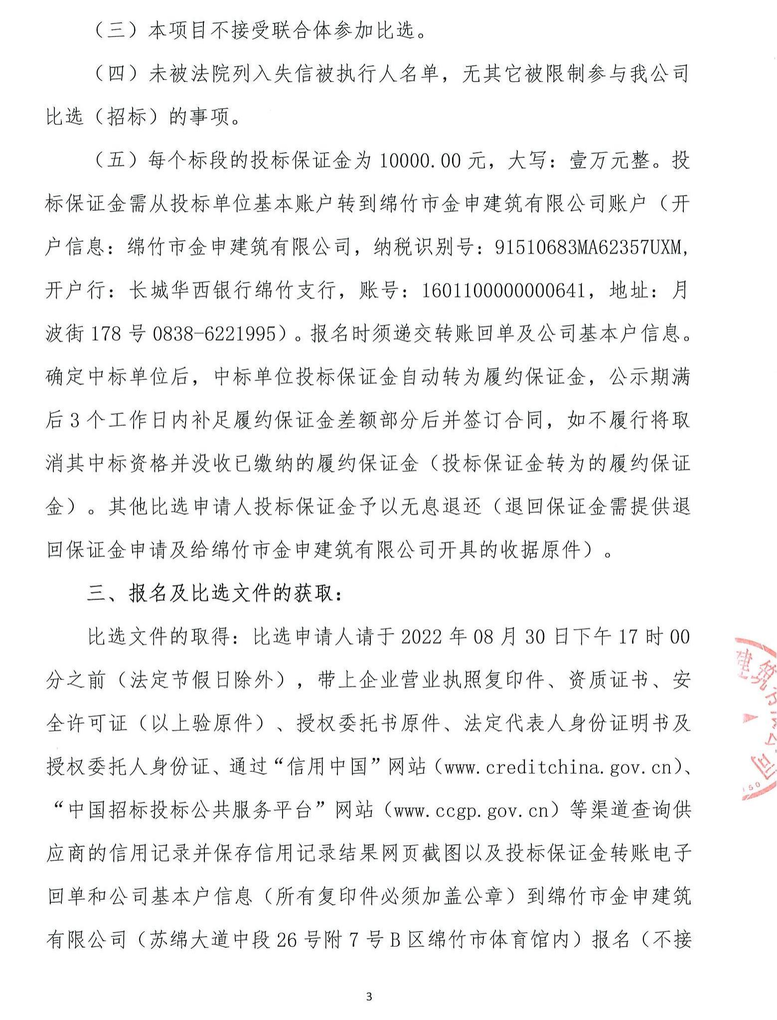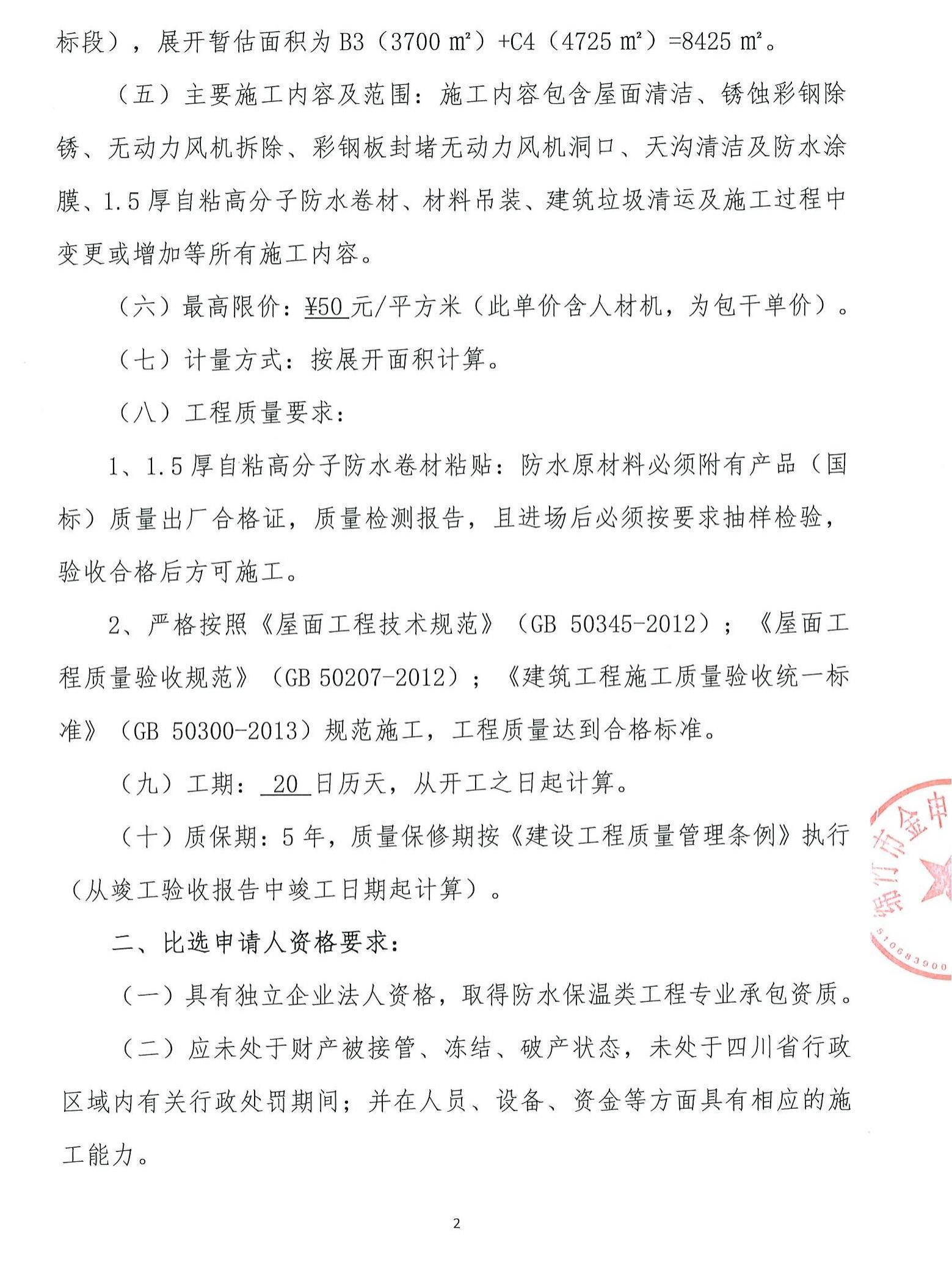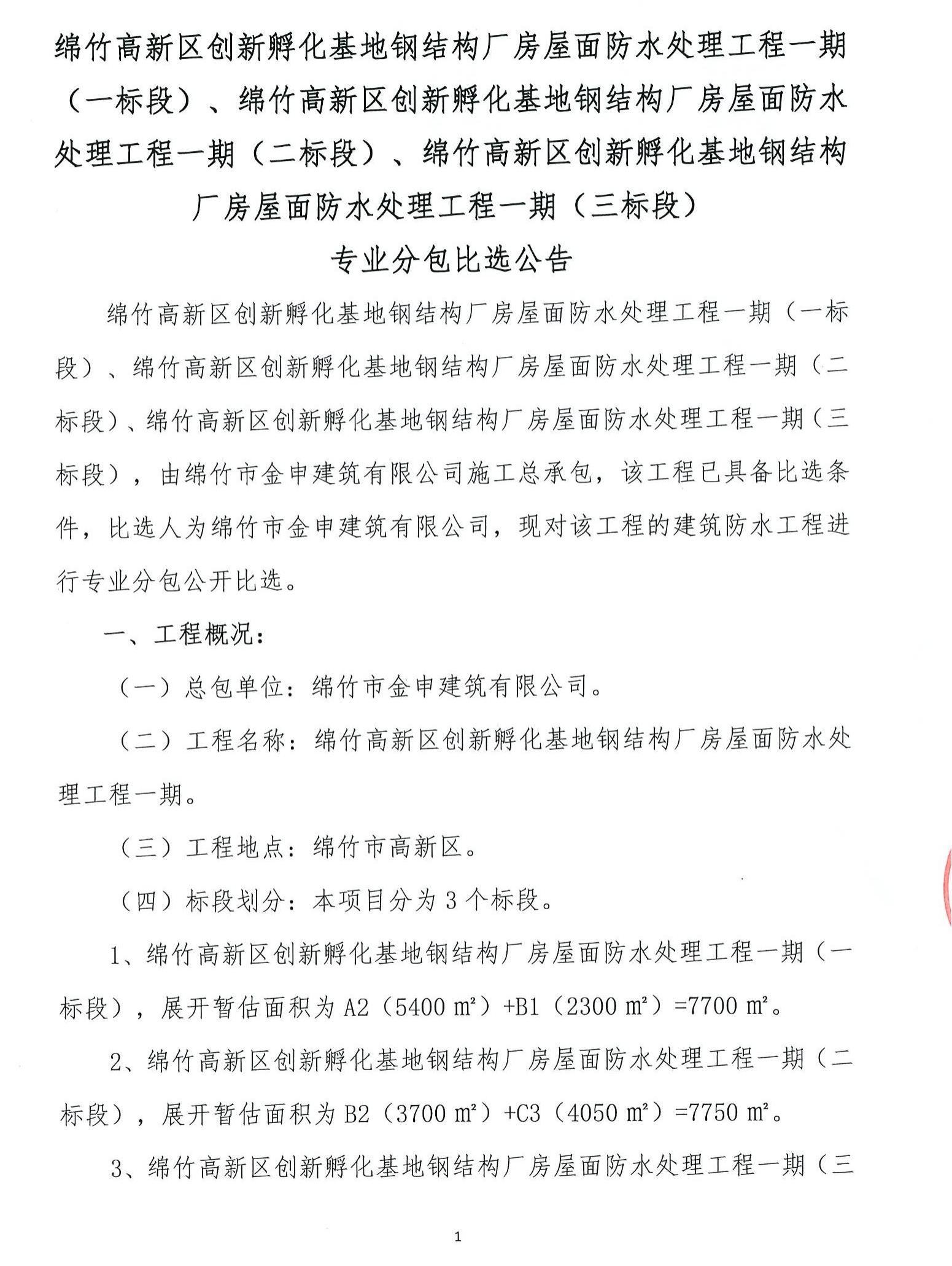 綿竹高新區(qū)孵化基地鋼化廠房防水工程一期分包比選公告