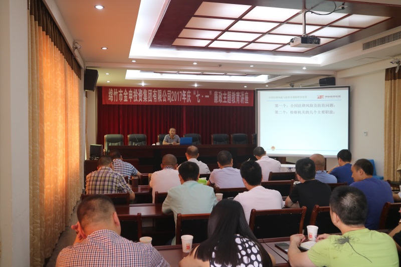 綿竹市金申投資集團(tuán)有限公司邀請(qǐng)市檢察院職務(wù)犯罪預(yù)防局易建華局長(zhǎng)給全體干部職工上了一堂生動(dòng)的廉政教育講座。易建華局長(zhǎng)以案說(shuō)法、以案釋紀(jì)、以案施教,概述了當(dāng)前的反腐形勢(shì),詳細(xì)分析了職務(wù)犯罪的易發(fā)點(diǎn)和多發(fā)點(diǎn)及其原因,通過(guò)典型剖析,用身邊的反面典型人和事教育金申集團(tuán)公司黨員干部警鐘長(zhǎng)鳴、廉潔從業(yè)。綿竹市金申投資集團(tuán)有限公司黨委書(shū)記、董事長(zhǎng)徐軍強(qiáng)調(diào),公司黨員干部要在日常工作中注重A級(jí)風(fēng)險(xiǎn)點(diǎn)防控,強(qiáng)化監(jiān)督管理和廉政教育,切實(shí)做到,杜絕職務(wù)犯罪行為發(fā)生。