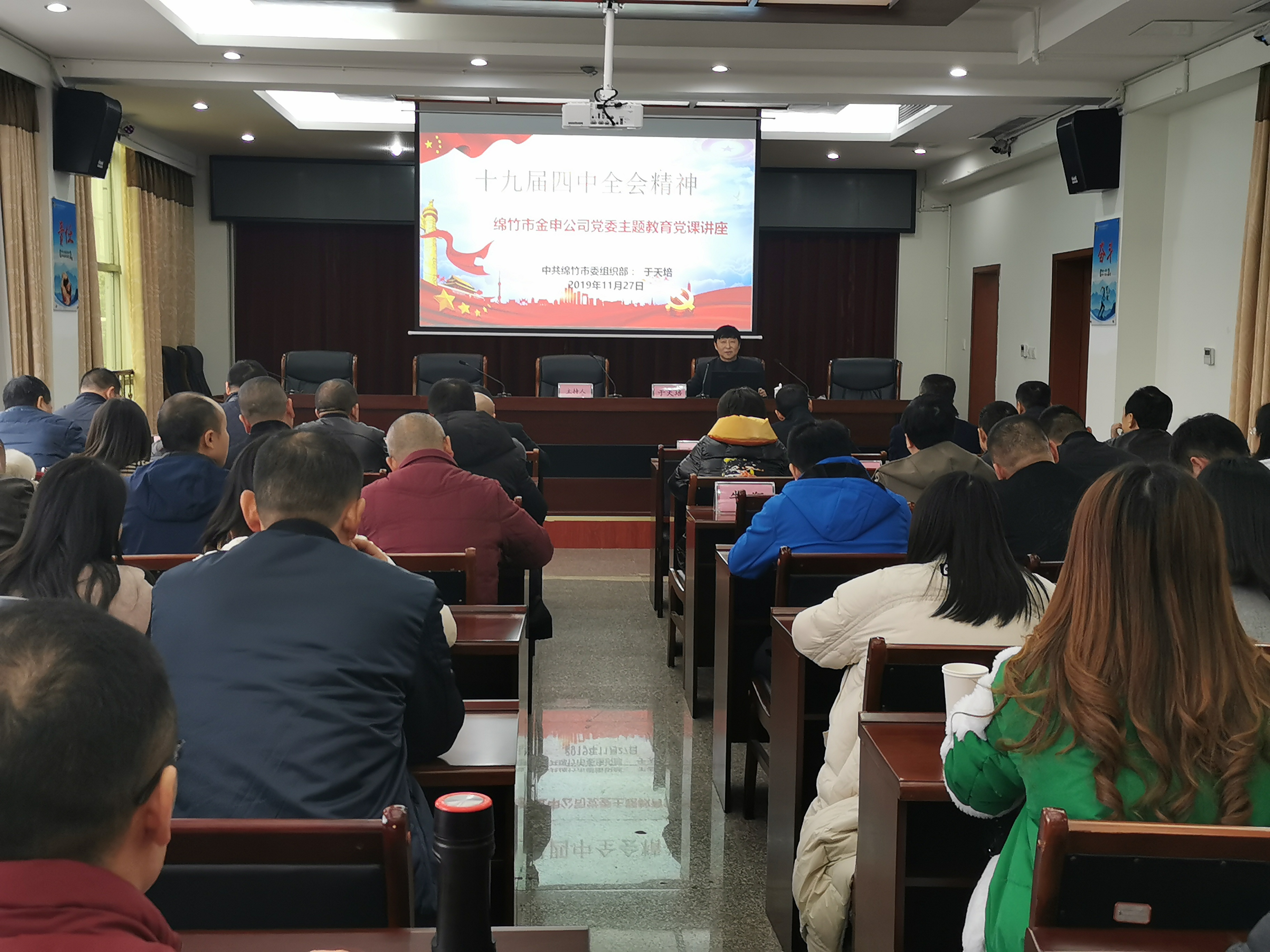 為深入貫徹習(xí)近平總書記關(guān)于“學(xué)習(xí)黨史、國史,是堅(jiān)持和發(fā)展中國特色社會(huì)主義、把黨和國家各項(xiàng)事業(yè)繼續(xù)推向前進(jìn)的必修課”重要指示精神,深刻領(lǐng)會(huì)十九屆四中全會(huì)的精神內(nèi)涵。按照“不忘初心、牢記使命”主題教育總體要求,結(jié)合“金申講堂”特色企業(yè)文化活動(dòng),2019年11月27日,金申集團(tuán)公司邀請(qǐng)市委主題教育第四巡回指導(dǎo)組組長于天培同志進(jìn)行專題講座。集團(tuán)公司黨委副書記秦林、黨委委員谷永軍、王強(qiáng)及集團(tuán)公司黨員、中層干部、積極分子60余人參加,專題講座由黨委副書記、紀(jì)委書記孫江同志主持。